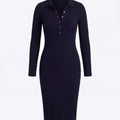 Ariadna - prążkowana sukienka midi z dekoltem polo