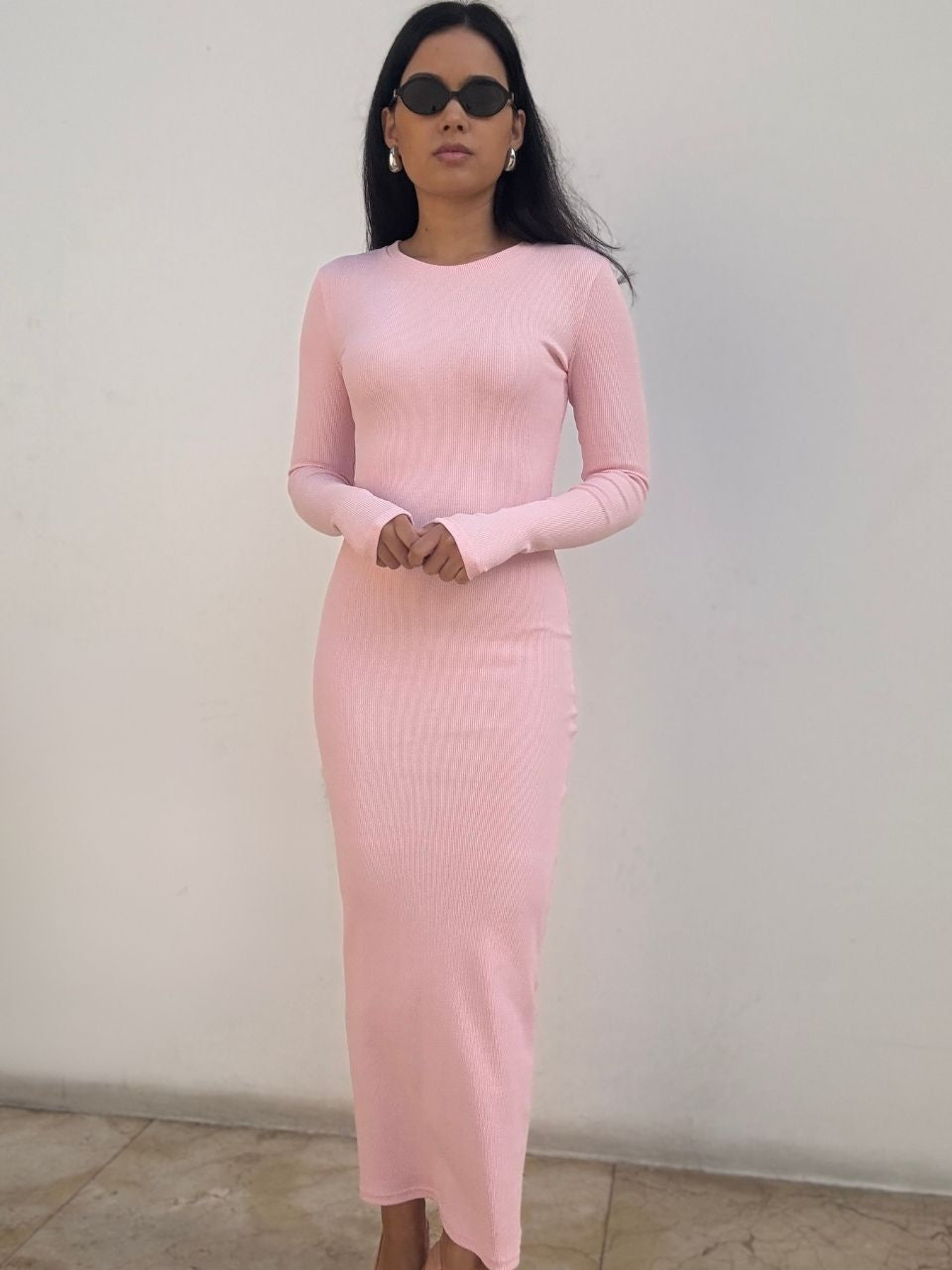 Eos - klasyczna prążkowana sukienka maxi
