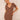 Prążkowana sukienka mimi w kolorze czekoladowego brązu to połączenie klasyki z nowoczesnym akcentem. Sukienka o długości do kolan perfekcyjnie podkreśla sylwetkę, a miękka, prążkowana tkanina zapewnia komfort noszenia. Dekolt w kształcie litery V, subtelnie ozdobiony złotymi napami, wprowadza elegancki, a zarazem lekko wyrazisty detal, nadając całości szyku. Kolor chocolate dodaje sukience wyjątkowego, ciepłego charakteru, sprawiając, że jest to doskonała opcja zarówno na wieczorne wyjścia, jak i na spotkania w ciągu dnia.