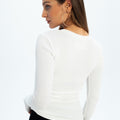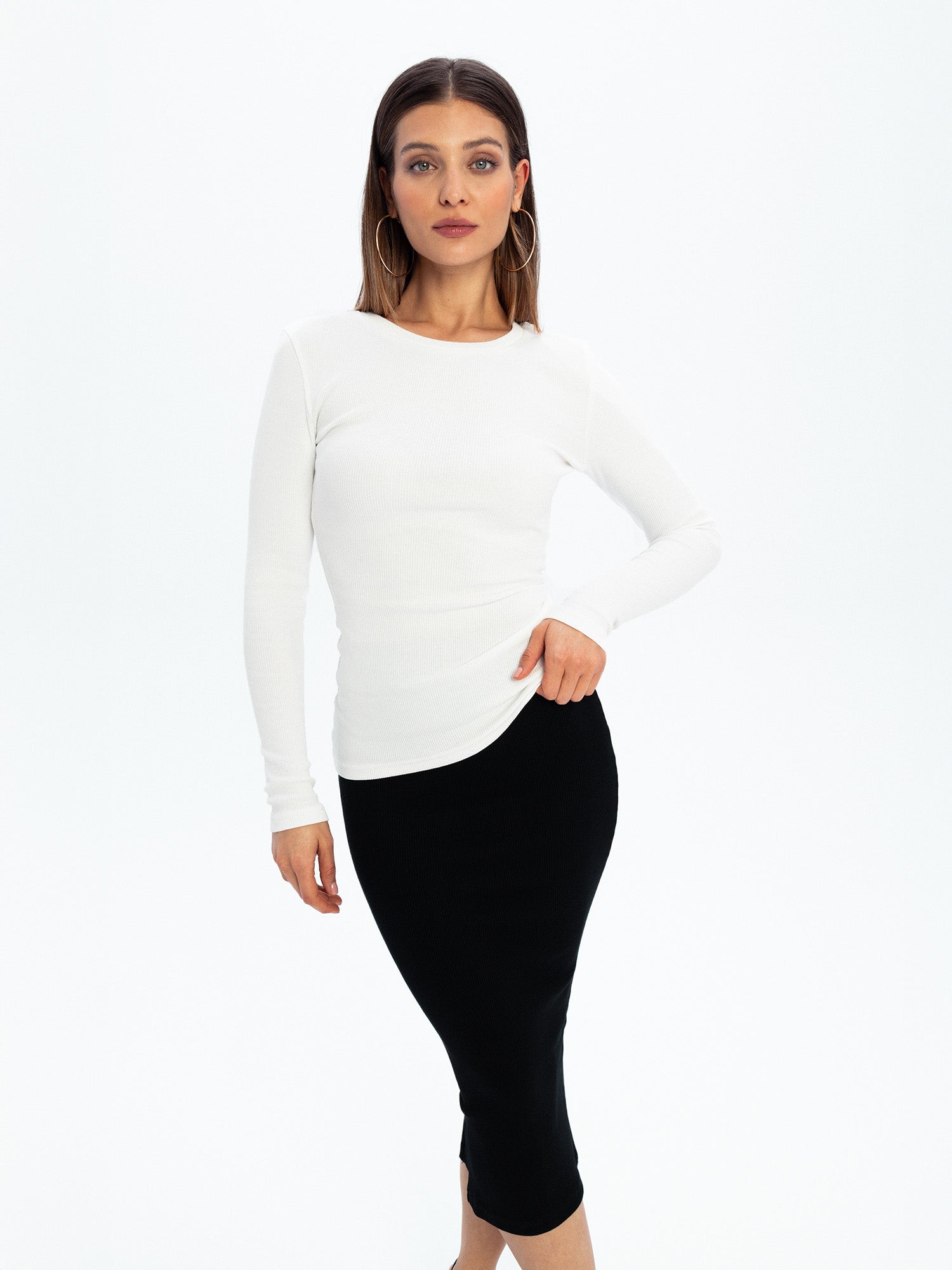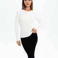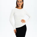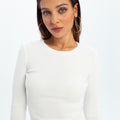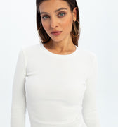 Eos - prążkowany top basic z długim rękawem - ECRU