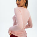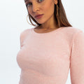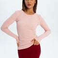 Eos - prążkowany top basic z długim rękawem - PINK MELANGE