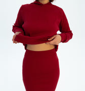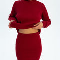 Tremity - prążkowana ołówkowa spódnica midi za kolano - CHERRY
