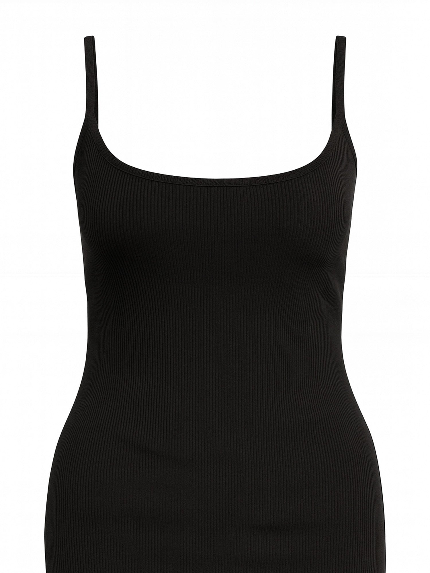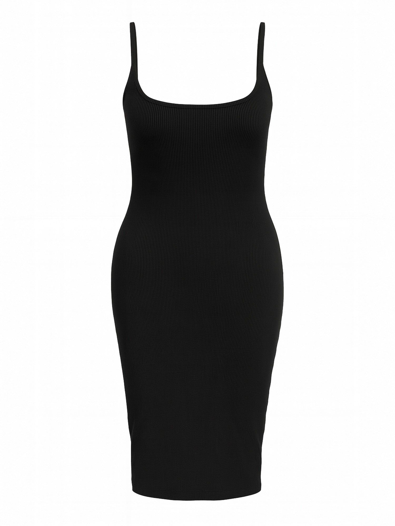Das Modell RODEO in der Länge MIMI und klassischem Schwarz ist die perfekte Kombination aus Komfort und Eleganz. Der taillierte Schnitt, die dünnen Träger und die Knielänge machen es zu einer großartigen Wahl sowohl für den Alltag als auch für schlichtere, minimalistischere Outfits.