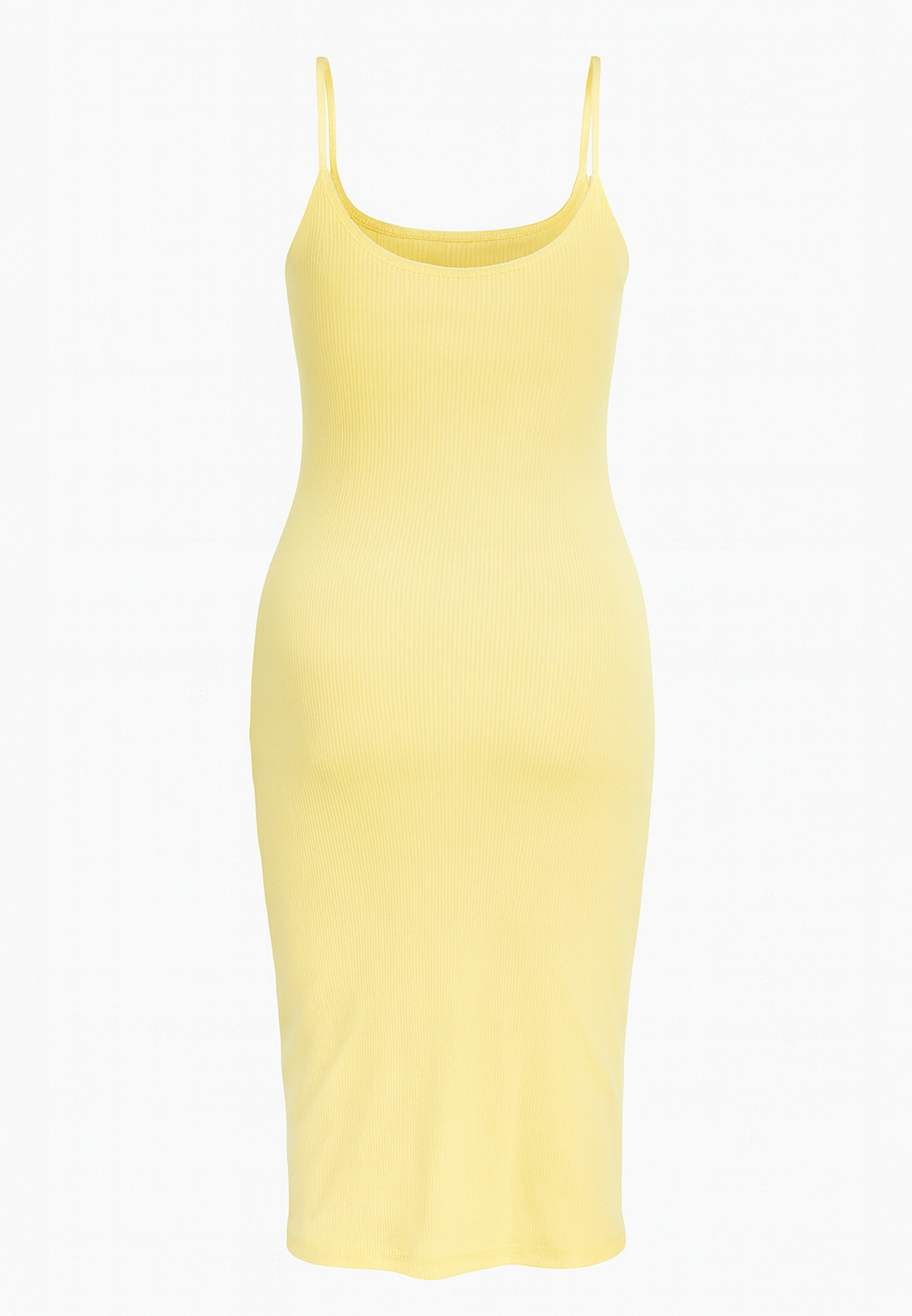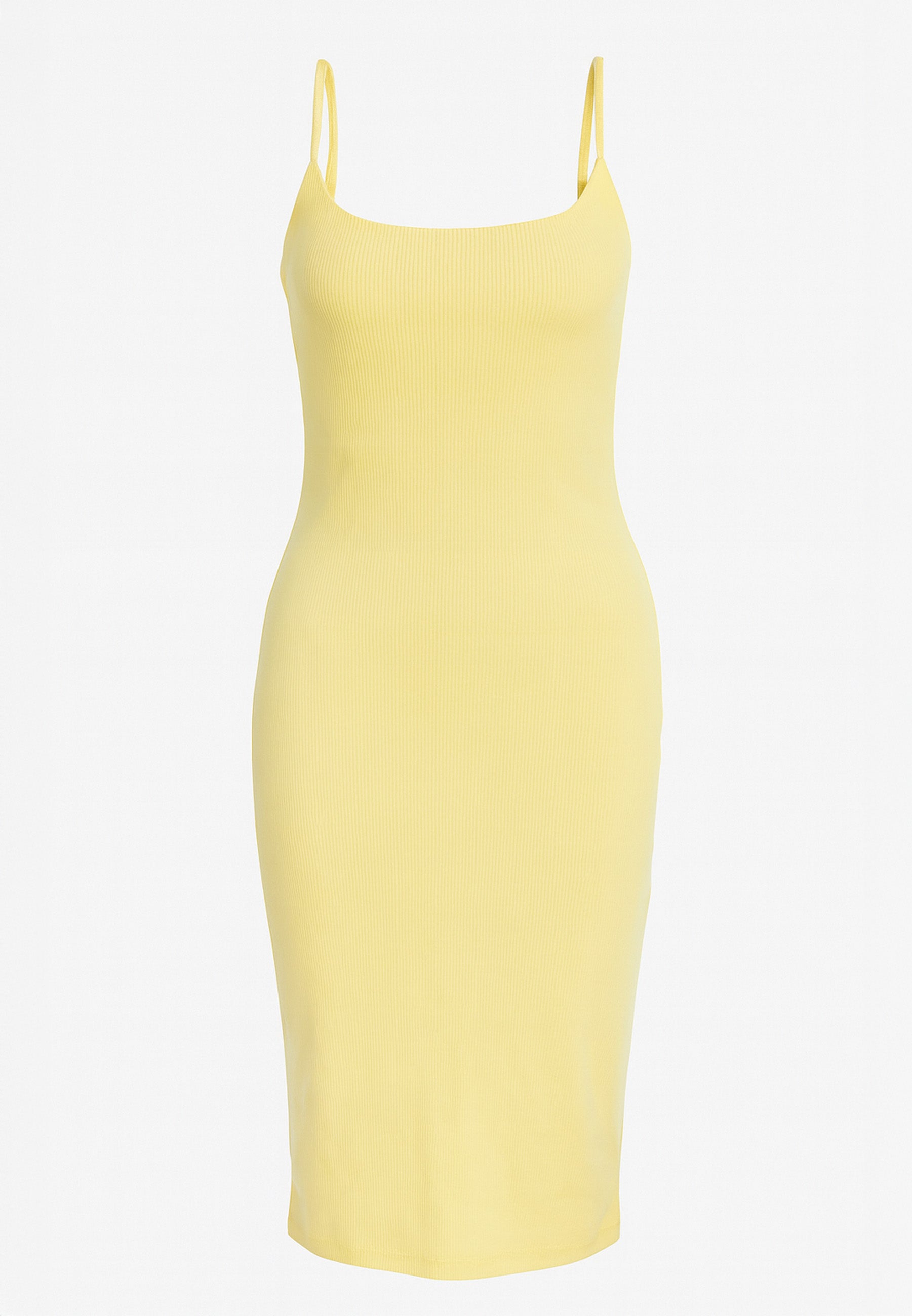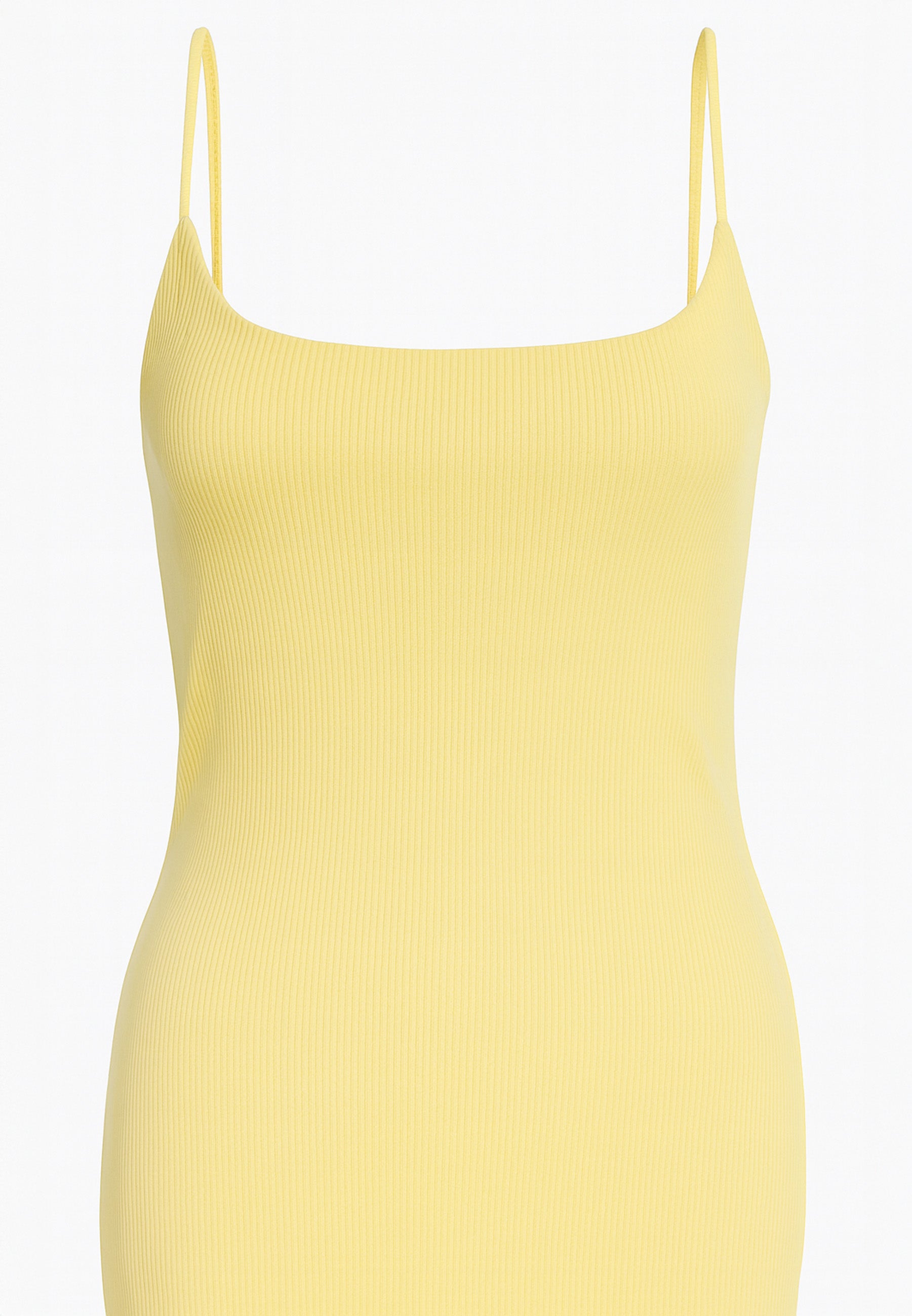 Das RODEO Kleid in MIMI -Länge und leuchtendem Gelb ist die perfekte Sommeroption – bequem, feminin und voller Sonnenschein. Sein klassisch tailliertes Design mit dünnen Trägern und knielanger Länge eignet sich perfekt für den Alltag und den Urlaub.