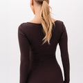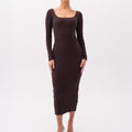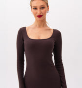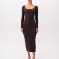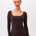 Dieses stilvolle und unglaublich feminine Maxikleid mit langen Ärmeln ist die perfekte Wahl für Frauen, die minimalistische Eleganz und höchsten Tragekomfort schätzen. Gefertigt aus einem dehnbaren Rippstrickstoff, schmiegt sich das Kleid perfekt an die Figur an, betont ihre Proportionen und sorgt für ganztägigen Tragekomfort. Der tiefe, eckige Ausschnitt setzt das Schlüsselbein wunderschön in Szene und verleiht dem Look eine subtile, sinnliche Note. Die Maxilänge streckt die Figur optisch und kreiert eine bemerkenswert elegante Silhouette – perfekt für Alltag und Abend.