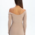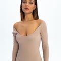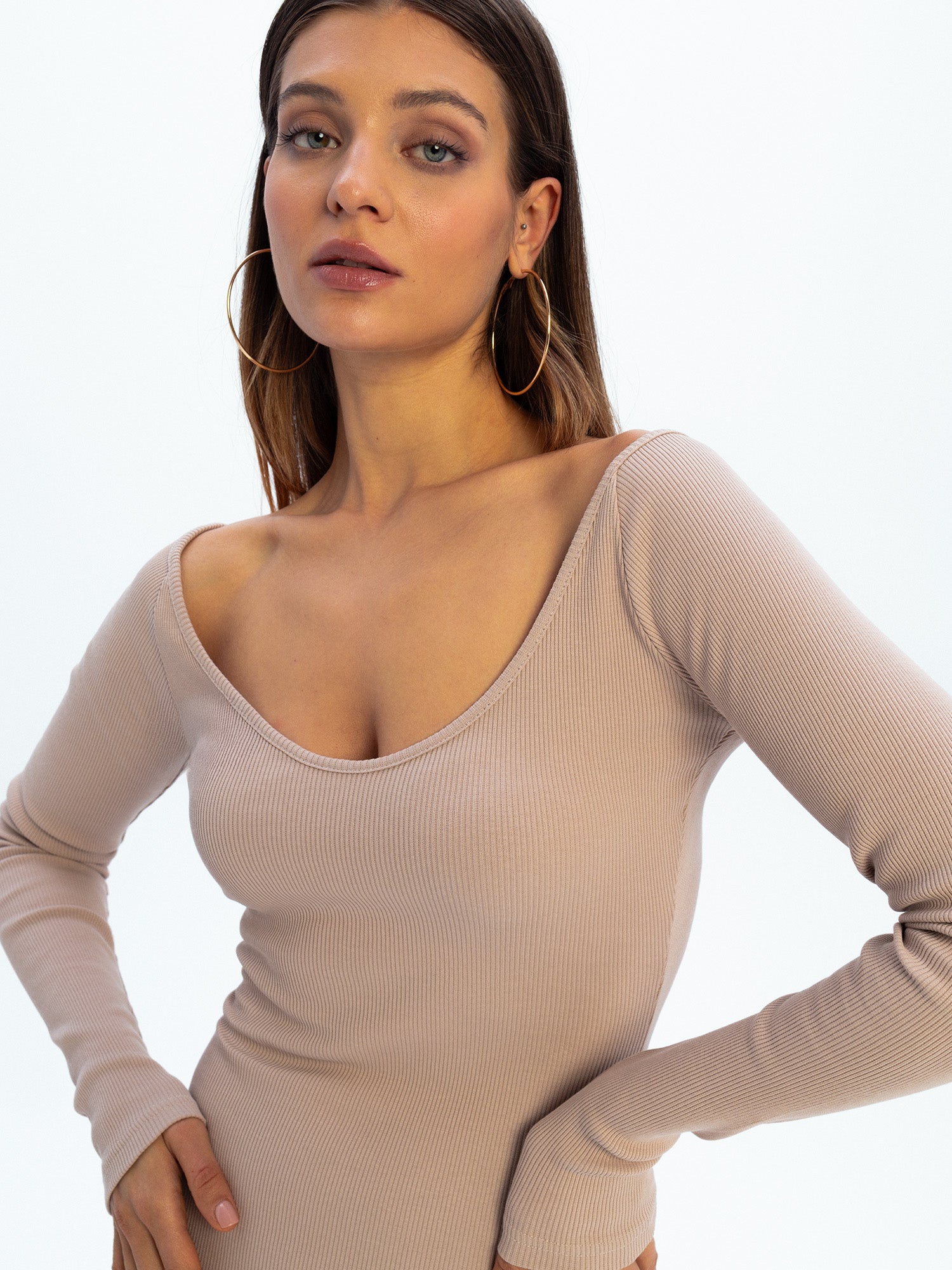Arizona - prążkowana sukienka midi z dekoltem V - NUDE